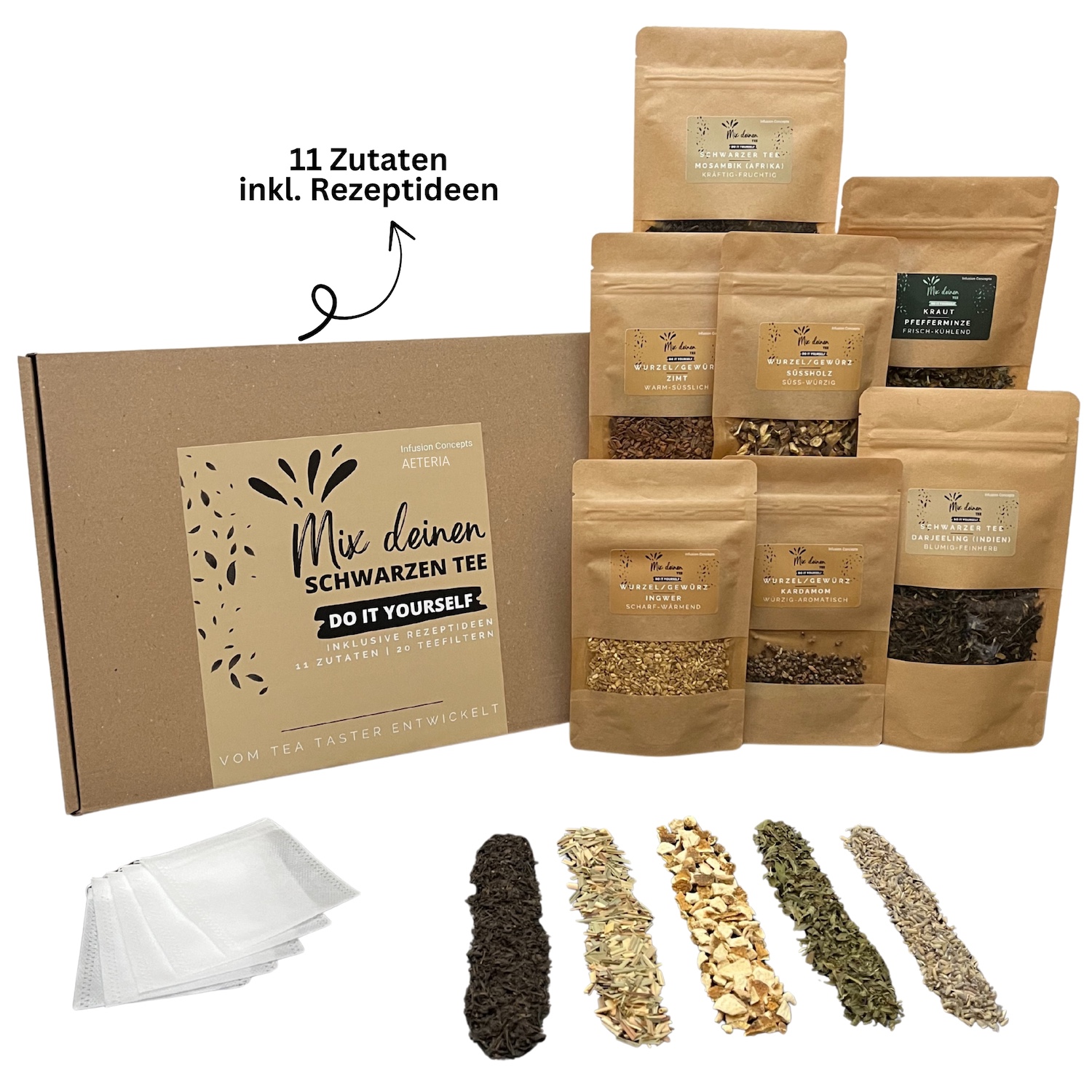 Handverlesen & abgestimmt von Janek, Tea Taster & Gründer von Infusion Concepts. Kreiere harmonische und aromatische Eigenkreationen mit Premium Blatt-Tees.